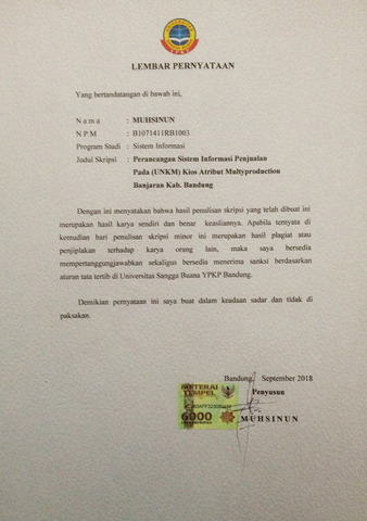 MUHSINUN, MUHSINUN (2018) PERANCANGAN SISTEM INFORMASI PENJUALAN PADA (UMKM) KIOS ATRIBUT MULTYPRODUCTION BANJARAN KAB. BANDUNG. Skripsi thesis, UNIVERSITAS SANGGA BUANA YPKP.